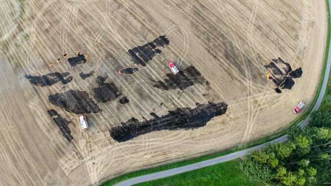 Vergangenen Dienstag trafen sich rund 35 Einsatzkräfte für eine gemeinsame praktische Ausbildung für die Feld- und Flächenbrandbekämpfung. Gerade in der aktuellen Hitzeperiode steigt die Gefahr von Wald- und Flächenbränden wieder deutlich an. Gerade in der Erntesaison kommt es immer im Zusammenhang mit der Wetterlage auch zu Bränden von Ackerschleppern oder Mähdreschern, die sich auf den Feldern schnell ausbreiten können. Besonders problematisch und rasend schnell können sich große Freiflächenbrände entwickeln, wenn Wind dazu kommt.