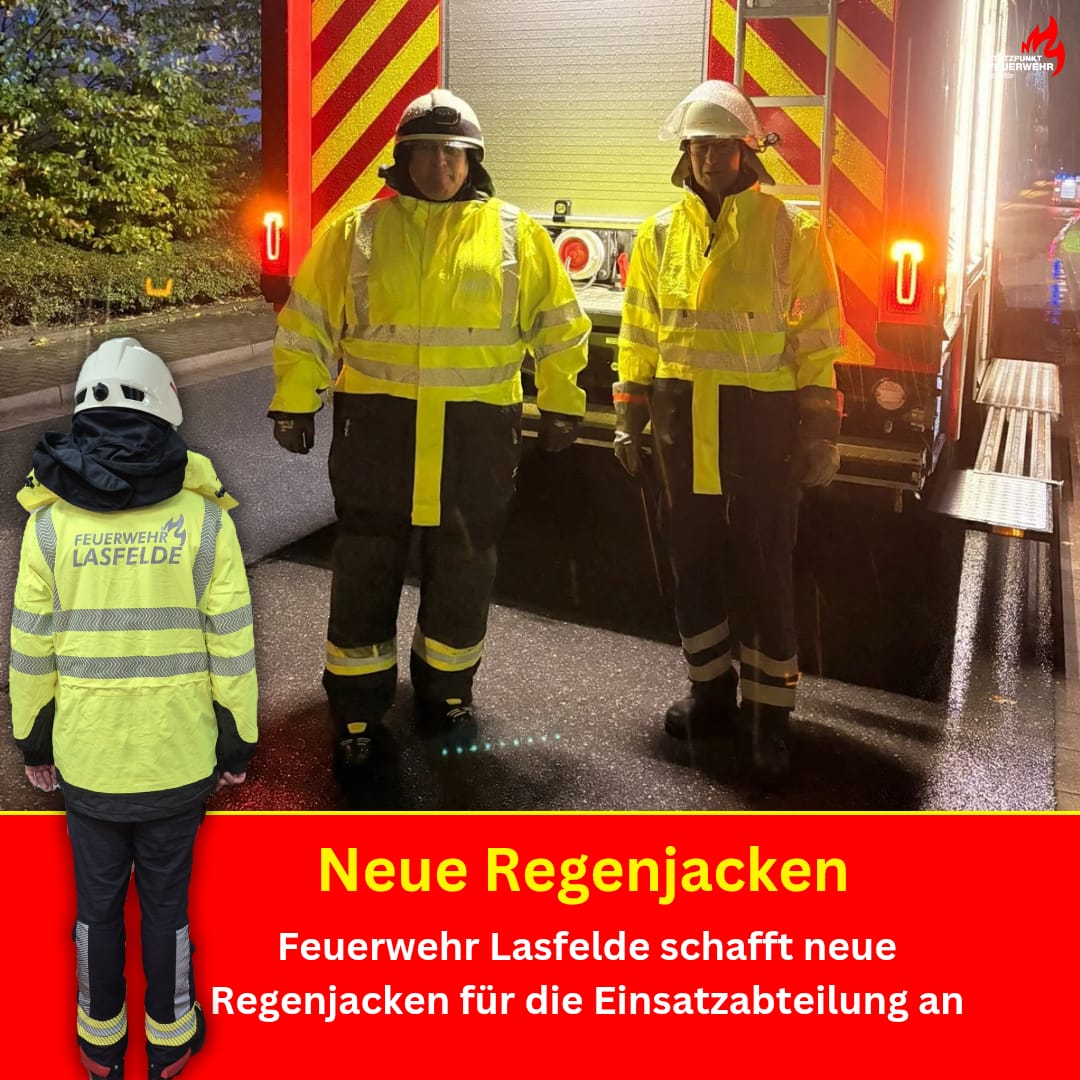 Die Feuerwehr Lasfelde beschafft 80 Regenjacken und erweitert die Einsatzkleidung der aktiven Kameraden und stärkt dadurch die Effektivität und Einsatzstärke der Wehr für zukünftige Einsätze bei starken Wetterverhältnissen oder Extremwettereignissen.
