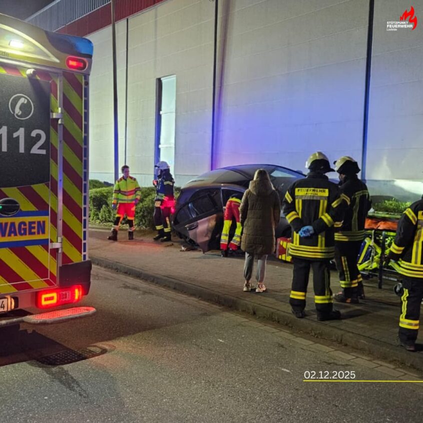 Vor Ort stellte sich heraus, dass eine Fahrerin eines PKW aus gesundheitlichen Gründen die Kontrolle über ihren PKW verlor und dabei über den Bürgersteig fuhr und in einem angrenzenden Gebüsch zum Stehen kam. Nach Absprache mit dem Rettungsdienst verblieb die Person zur Erstversorgung im Fahrzeug. Zur schonenden Befreiung der Person, wurde mit dem HLF das Fahrzeug von einer angrenzenden Gebäudemauer gezogen, sodass die Fahrerseite komplett zugänglich war. Bis zum Eintreffen des Abschleppunternehmens war die Straße voll gesperrt.
